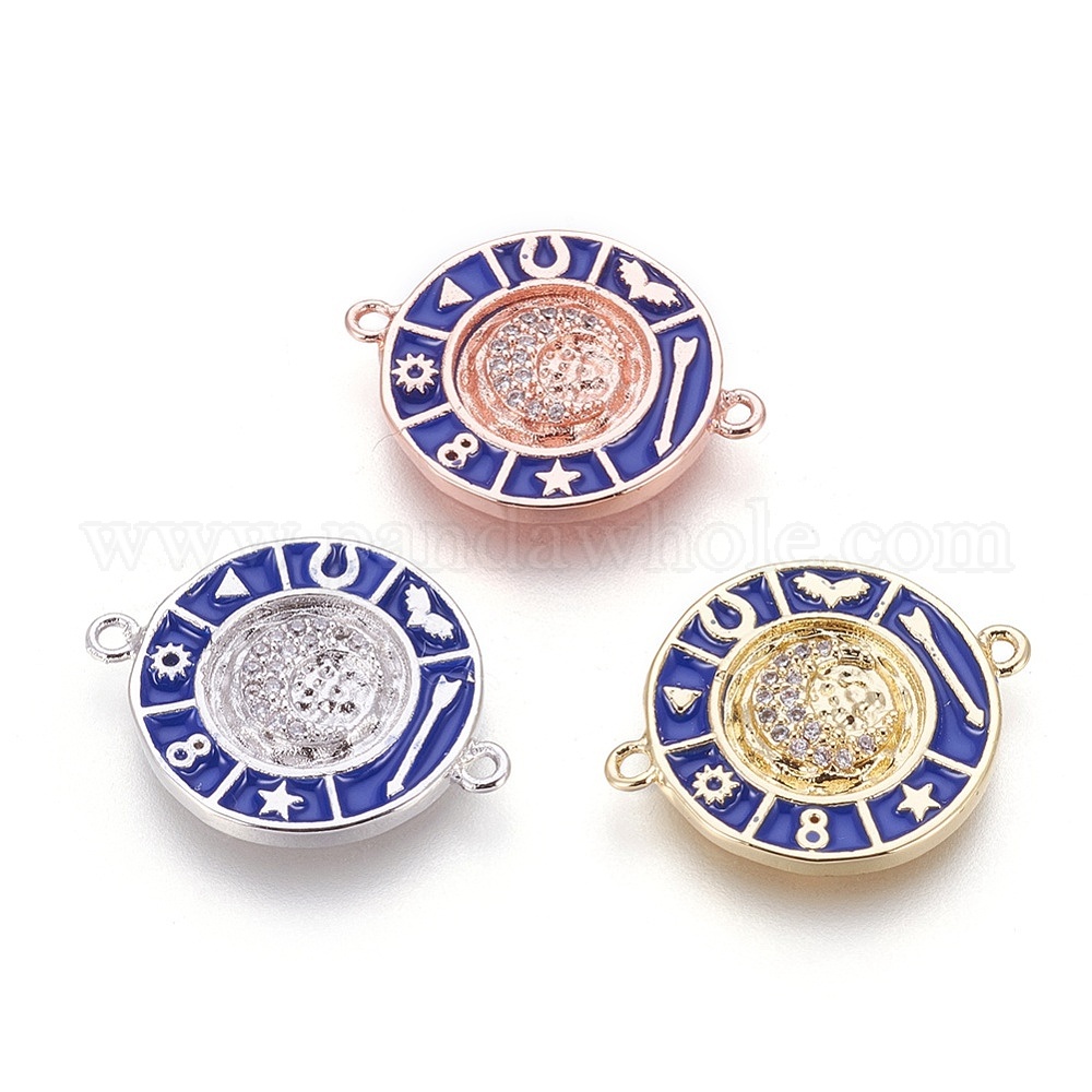 Соединители латунные эмалевые звенья, с микро проложить кубического циркония, плоские круглые с луной