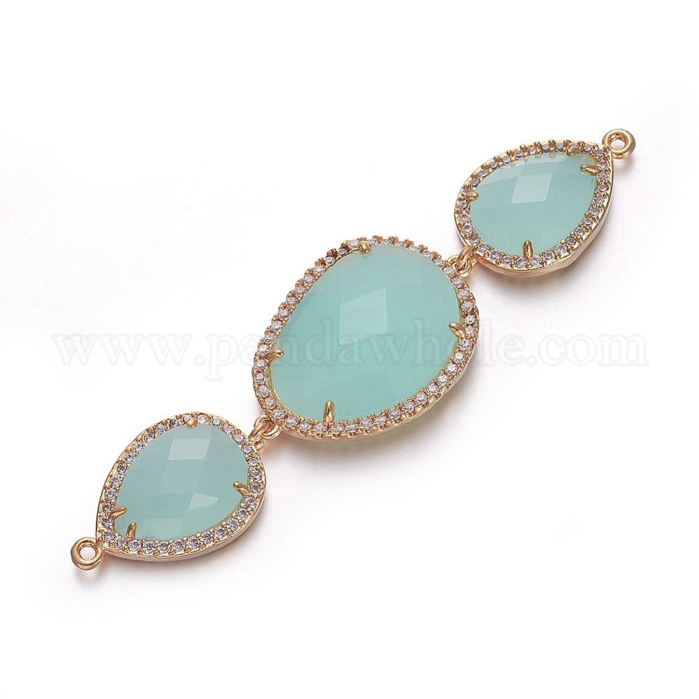 Соединители звеньев латуни стеклянные, с микро проложить кубического циркония, капля, золотые