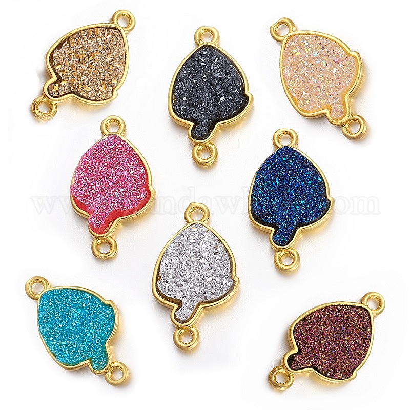 Соединители латунные звенья, с друзой смолой, Золотое покрытие цвета, клубника