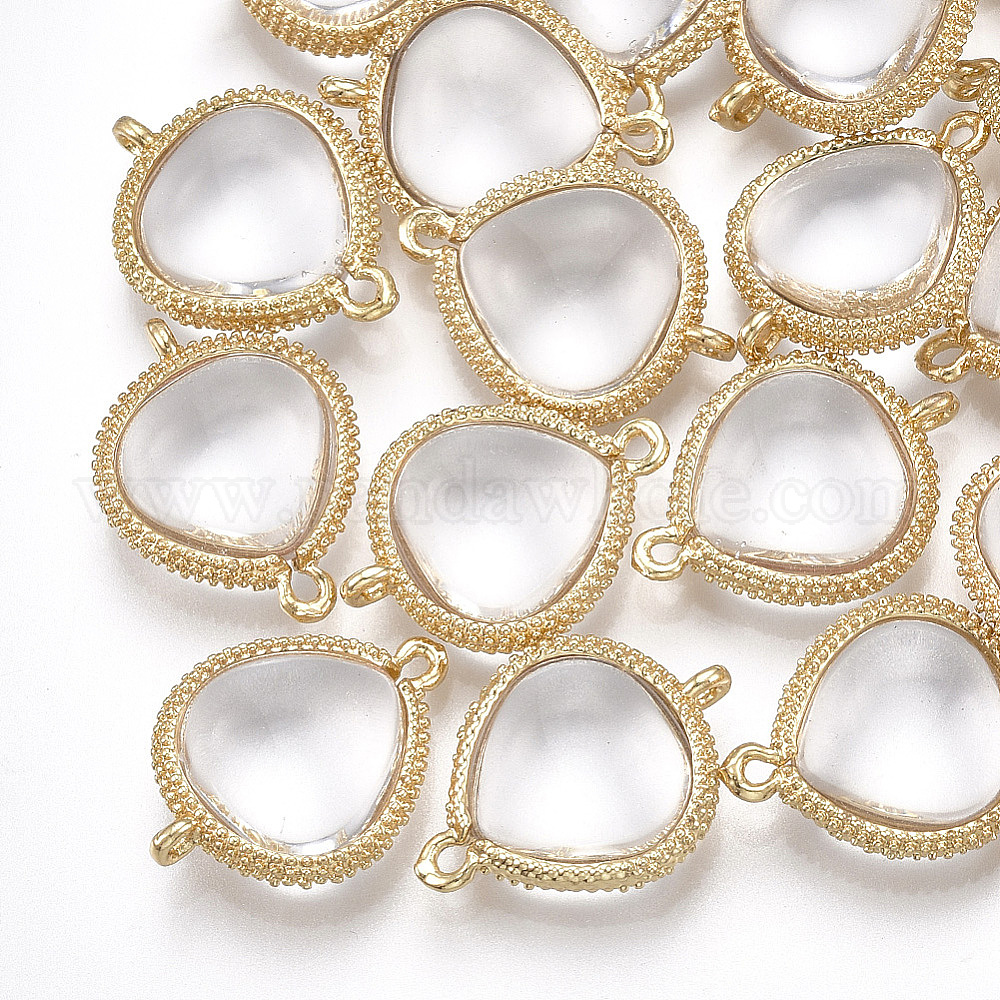 • Прозрачный Соединители стеклянные ссылки, с латунной фурнитурой , слеза, золотые, прозрачные, 19x14x5 мм, отверстие : 1.2 мм