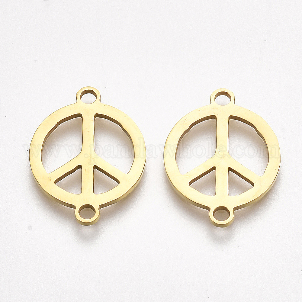 • Золотой 201 соединительные звенья нержавеющие, лазерная резка, плоские круглые с знаком мира, золотые, 18.5x14x1 мм, отверстие : 1.5 мм