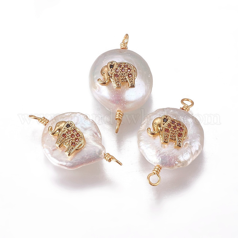 Соединители звеньев натурального жемчуга, с кубического циркония и латуни выводов, плоские круглые со слоном