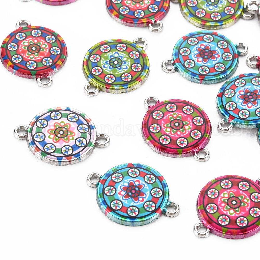 • (52) Непрозрачная лаванда Печатные соединители звеньев сплава, с эмалью, плоско-круглые, платина, разноцветные, 25.5x18.5x2.5 мм, отверстие : 2 мм
