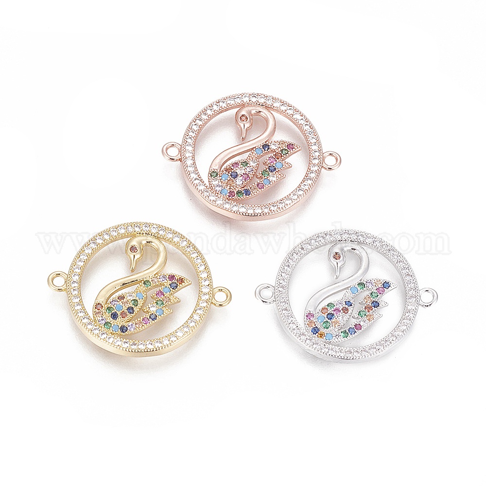 Латунные микро проложить кубических ссылки циркония, кольцо с лебедем, красочный