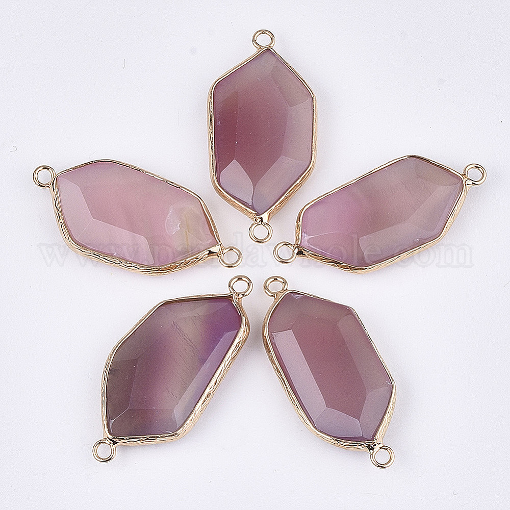 • Бледно-фиолетовый Красный Соединители звеньев натурального агата, с латунной фурнитурой , окрашенные, многоугольник, золотые, бледно-фиолетовый красный, 38~42x17~20x6~8 мм, отверстие : 2 мм