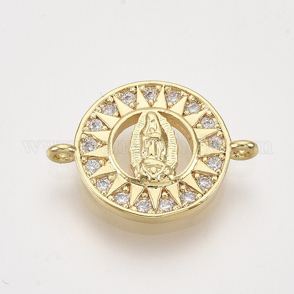 Латунные микро проложить кубических ссылки циркония, плоские круглые с Девой Марией