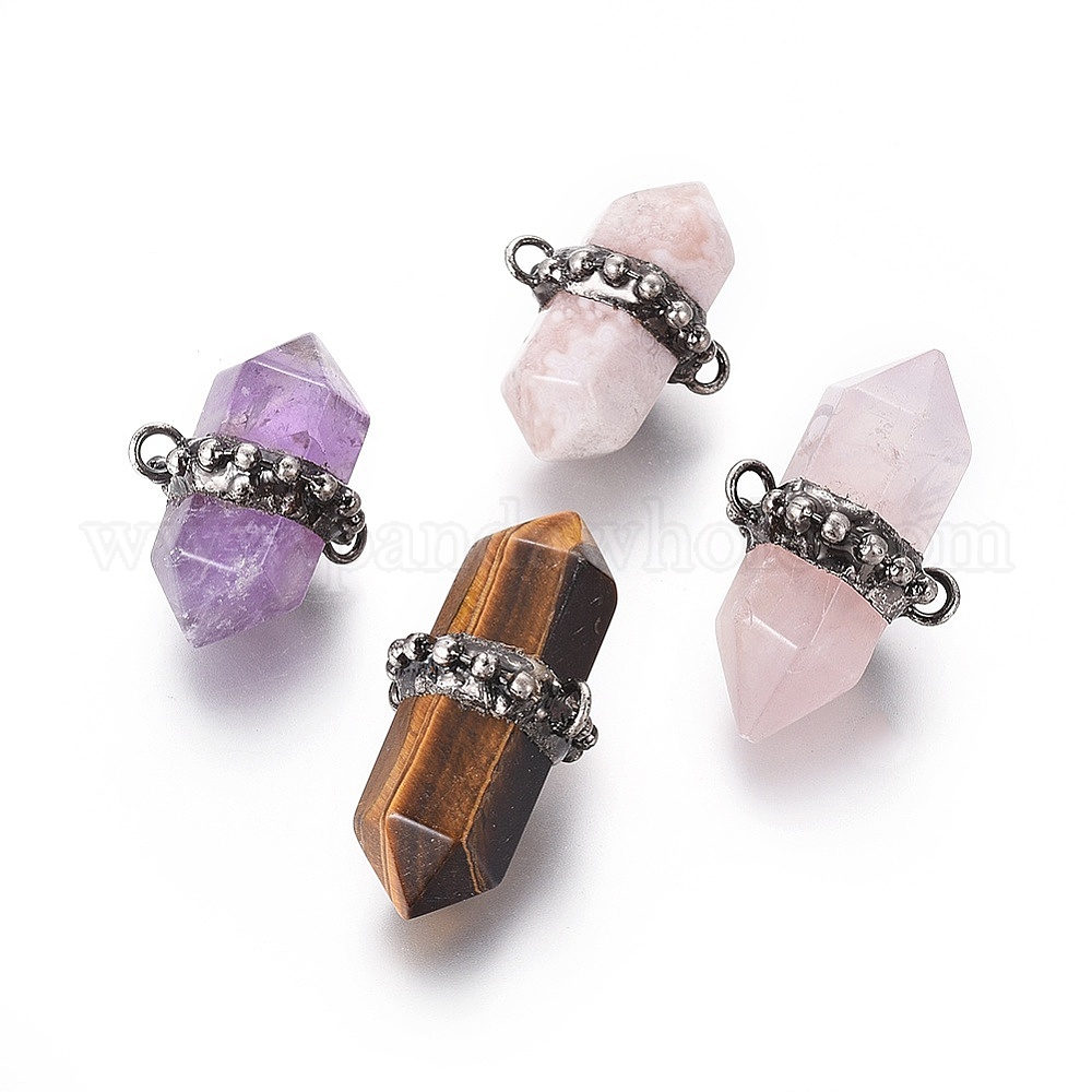 Соединители звеньев драгоценного камня, с латунной фурнитурой , пуля, античное серебро