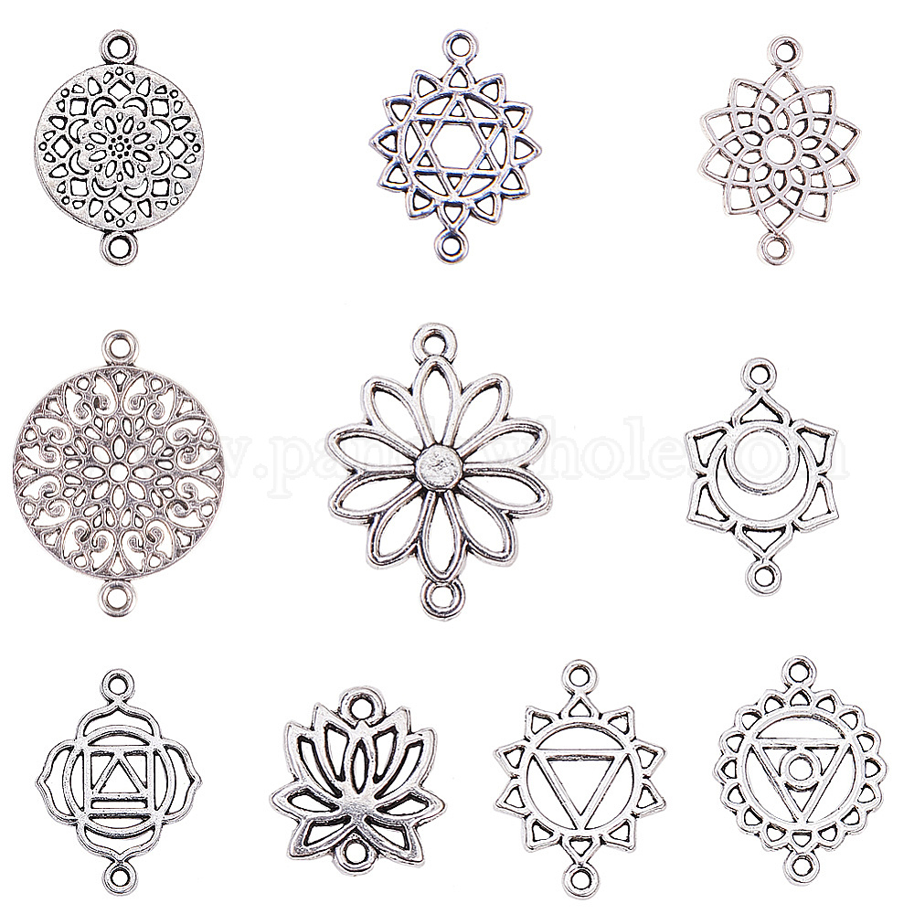 • Античное Серебро Чакра тибетский стиль сплава звенья, без свинца, античное серебро, 100 шт / коробка