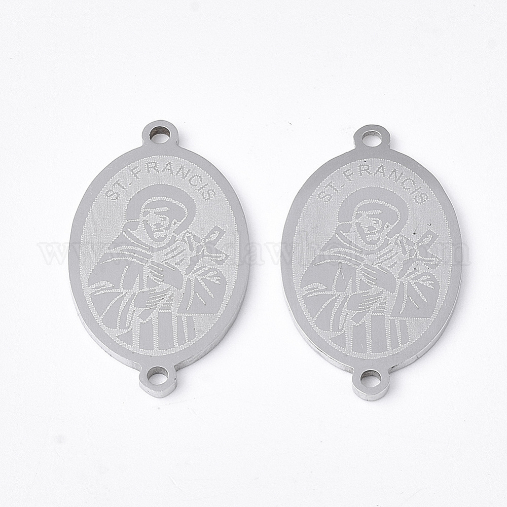 201 соединительные звенья нержавеющие, лазерная резка, овал со святым франциском