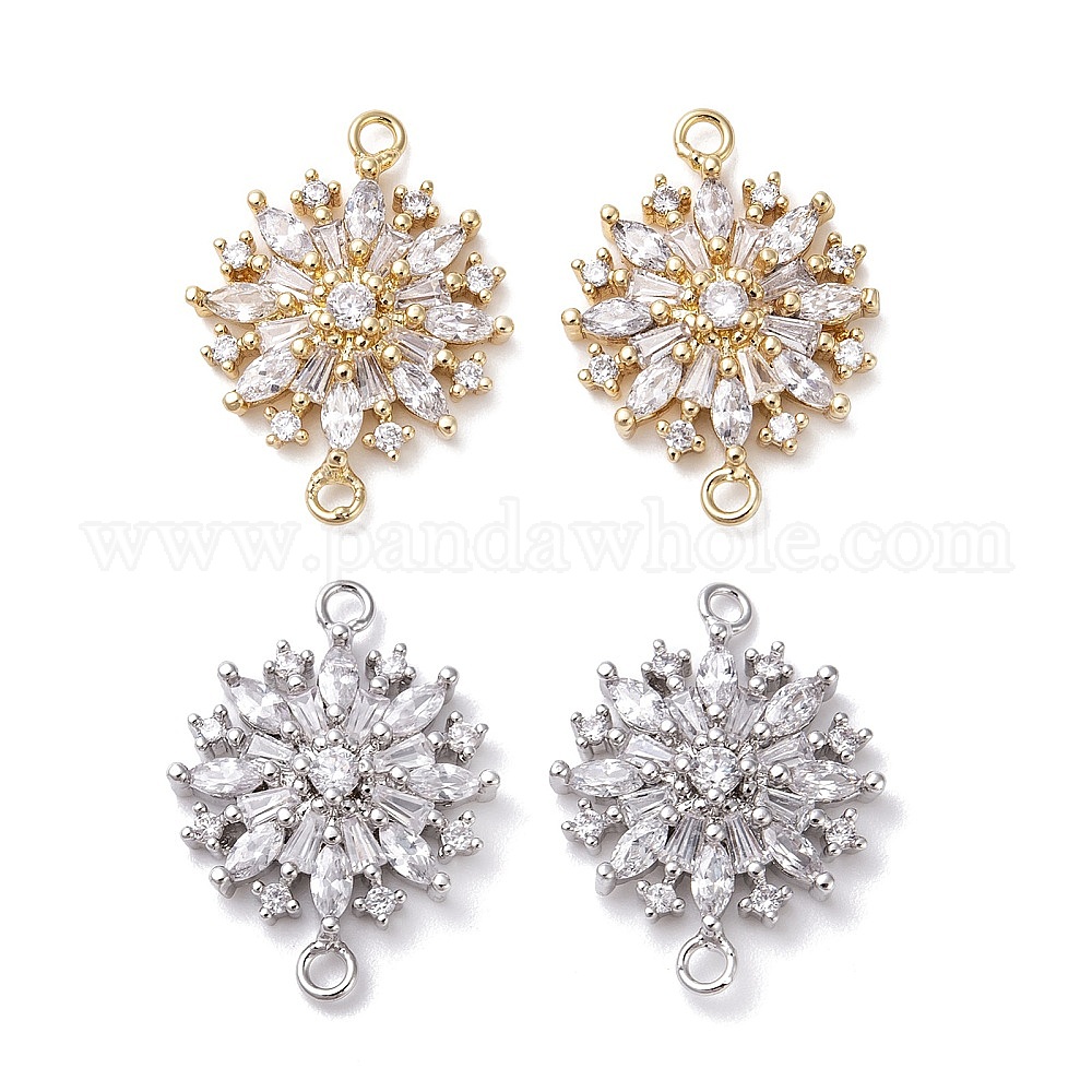 Латунные соединители звеньев микропаве, прозрачные кубические циркония, цветок