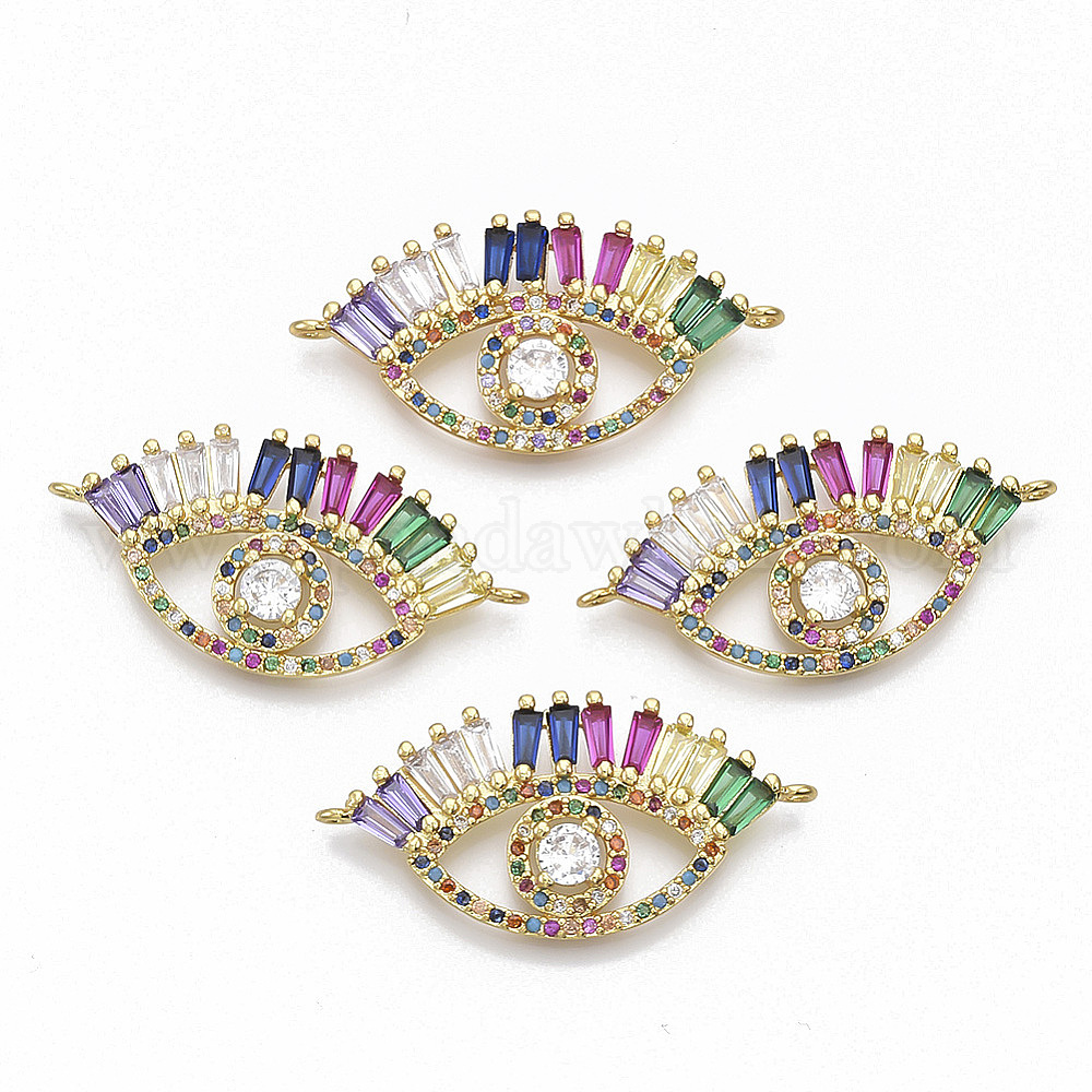 • Золотой Соединители из латуни с микропаве и кубическим цирконием, без кадмия и без свинца, глаз, красочный, золотые, 16.5x33x3.5 мм, отверстие : 1.2 мм