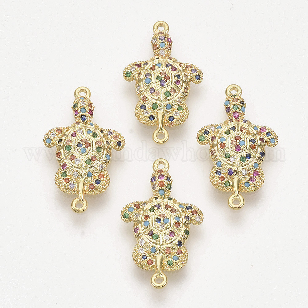 Соединители из латуни с микропаве и кубическим цирконием, черепаха, красочный