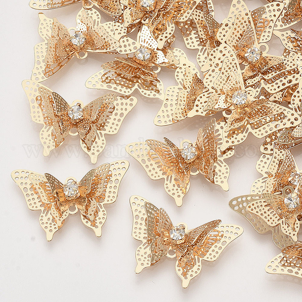 Соединители латунные звенья, с кристально горный хрусталь, 3 d бабочка