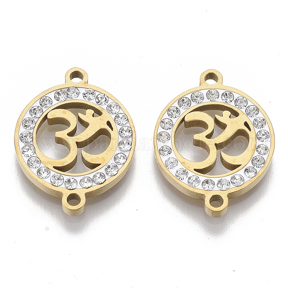 201 звенья / соединители из нержавеющей стали, с полимерной глиной кристалла горного хрусталем, плоский круг с АУМ / Ом