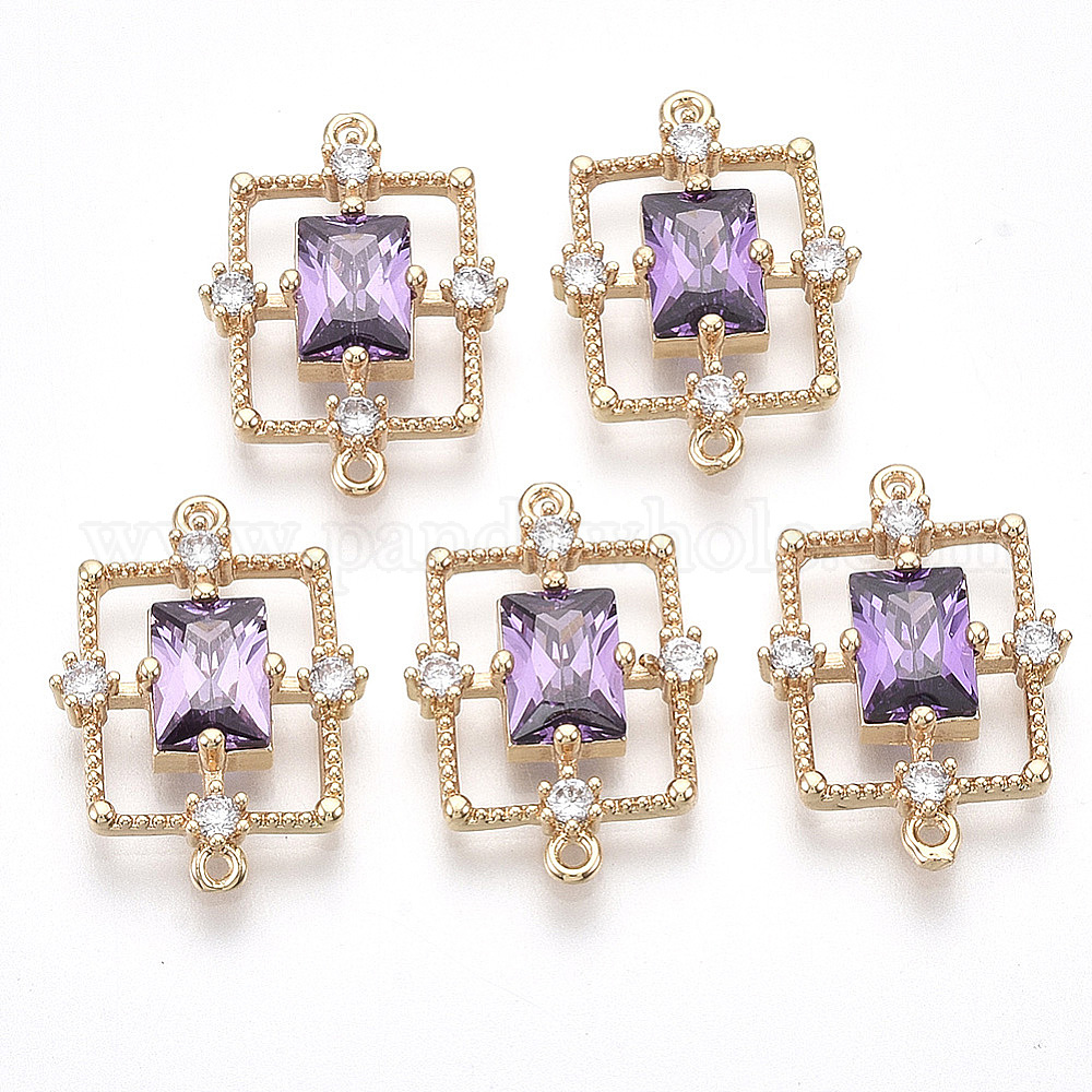• Фиолетовый Золотистые соединители из латуни, без никеля , с граненым стеклом и стразами, прямоугольные, фиолетовые, 19x13.5x3.5 мм, отверстие : 1 мм