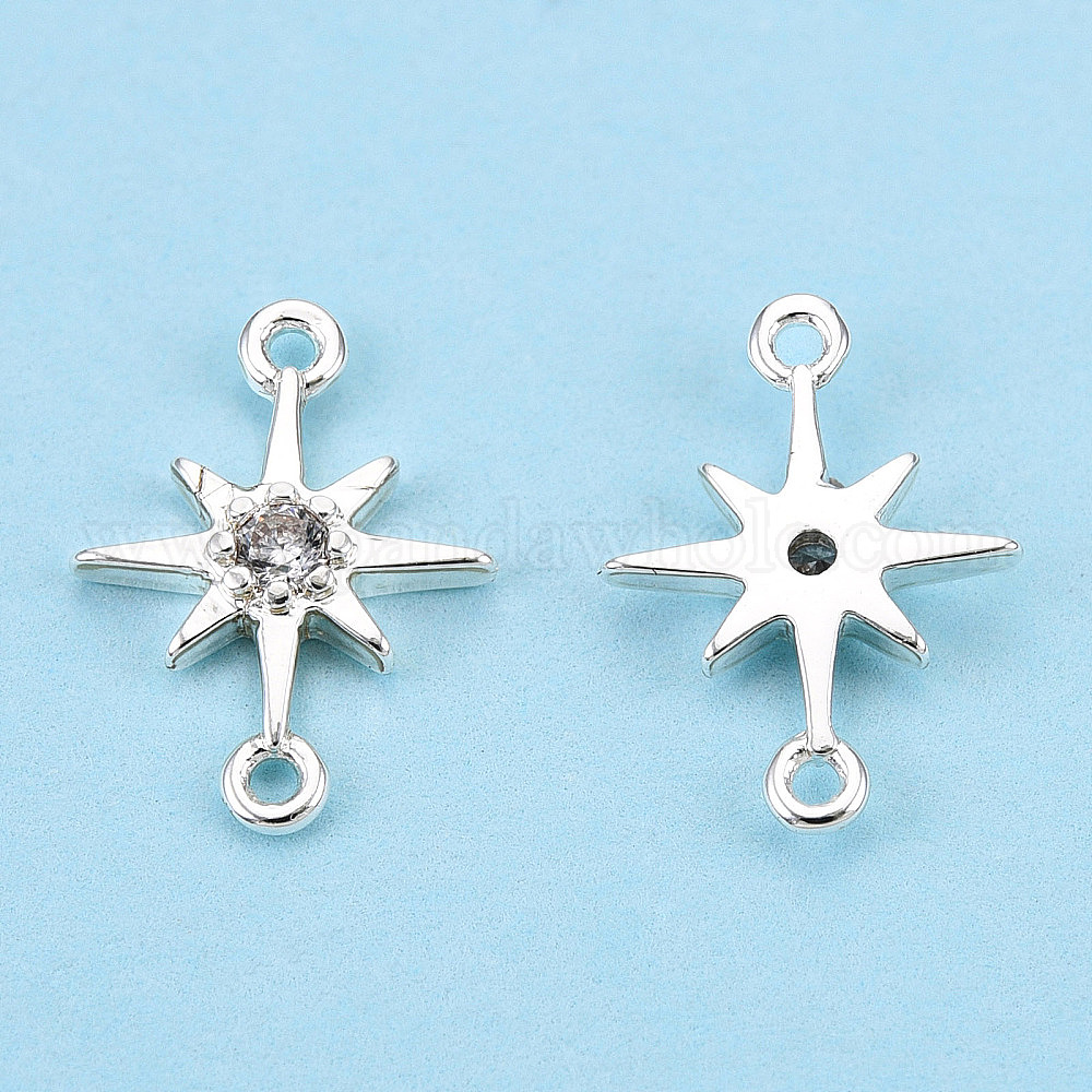 • Посеребрённый Латунные микропрозрачные кубические циркониевые соединения, долговечный, звезда, 925 серебро покрытием, 11.5x8.5x1.8 мм, отверстие : 0.8 мм