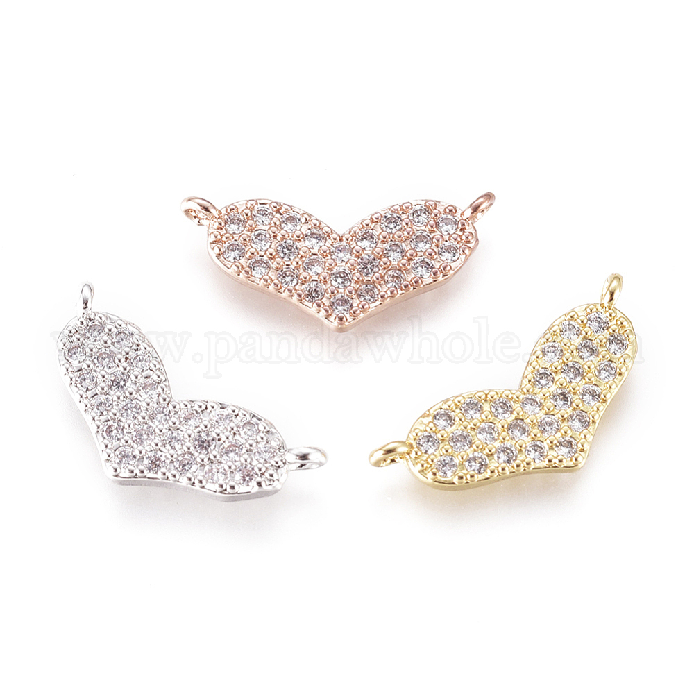 Соединители из латуни с микропаве и кубическим цирконием, сердце, прозрачные