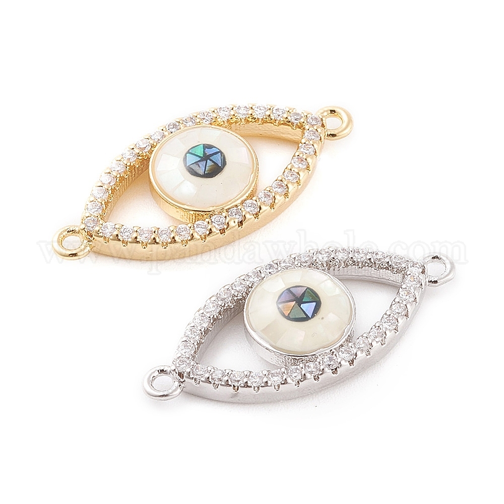 Соединители из латуни с микропаве и кубическим цирконием, с раковиной морского ушка / раковиной пауа и натуральной белой раковиной, без кадмия, без никеля и без свинца, глаз, прозрачные