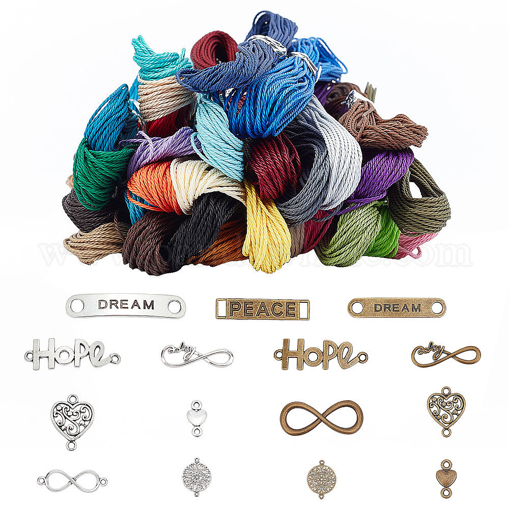 • (52) Непрозрачная лаванда Соединители из сплава в тибетском стиле, вощеной полиэфирным кордом, разноцветные, Шнур: 1 мм, 10 м / цвет, 30 цветов, 300 м / мешок, соединители: 30 шт. / упаковка