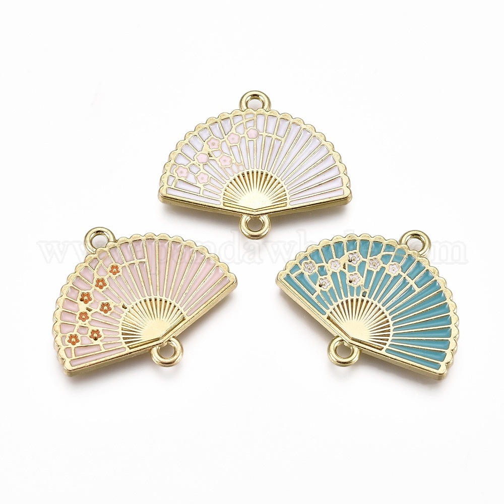 Коннекторы из сплава, с эмалью, складной веер с цветком сливы, золотой свет