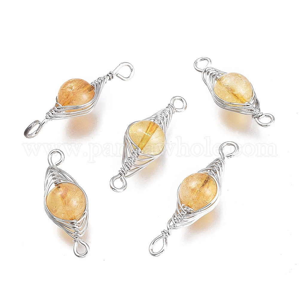 Соединители звеньев драгоценного камня, проволочные ссылки, с латунной проволокой платинового цвета, круглые