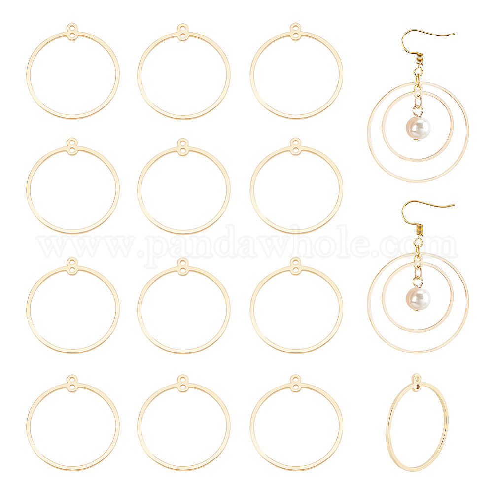 • Настоящее золото 18K Соединители латунные звенья, кольцо, реальный 18 k позолоченный, 27.5x25x1 мм, отверстия: 1.2 мм, 20 шт / коробка