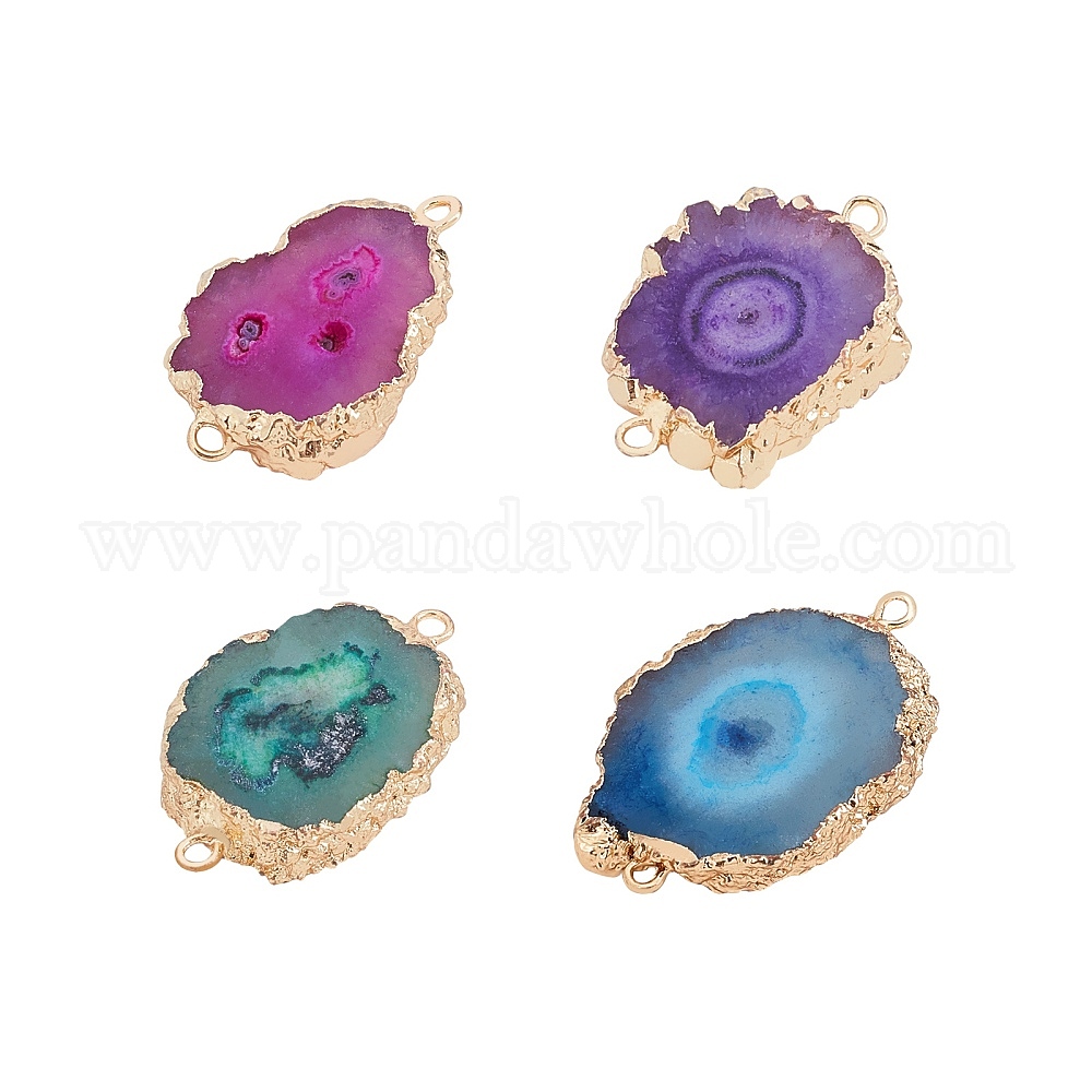 • (52) Непрозрачная лаванда Гальваника соединительные звенья гальванические натуральные друзья агат, с латунной фурнитурой , окрашенные, золотые, самородки, разноцветные, 30~50x15~30x5~7 мм, отверстие : 2~3 мм, 4 цветов, 1 шт / цвет, 4 шт / коробка