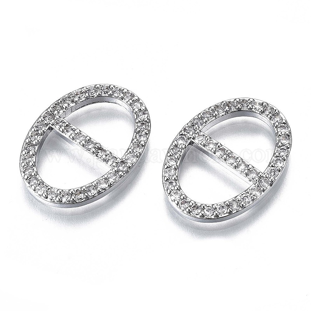 Латунные соединители звеньев микропаве, прозрачные кубические циркония, без кадмия, без никеля и без свинца, овальные