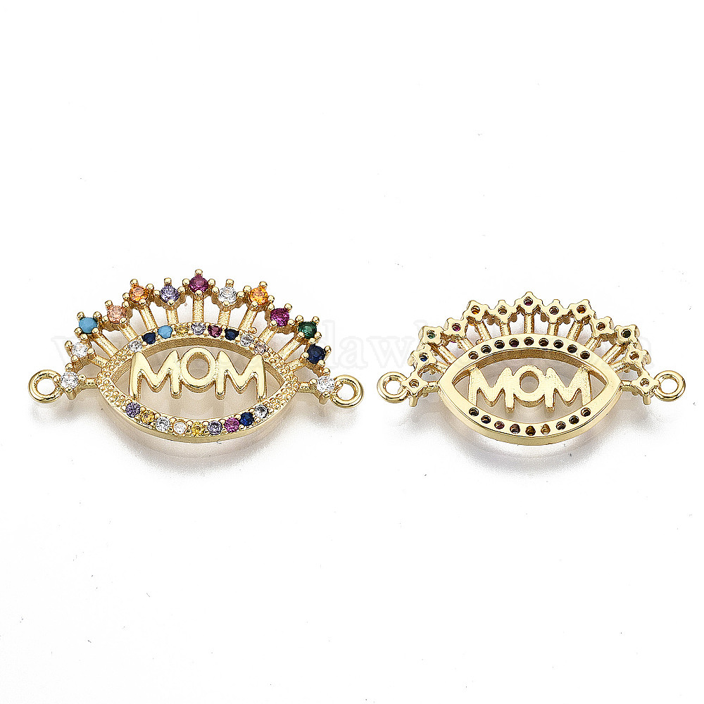 Латунные микро-проложить красочные кубические циркониевые соединители, день матери, без кадмия, без никеля и без свинца, глаз с мамой