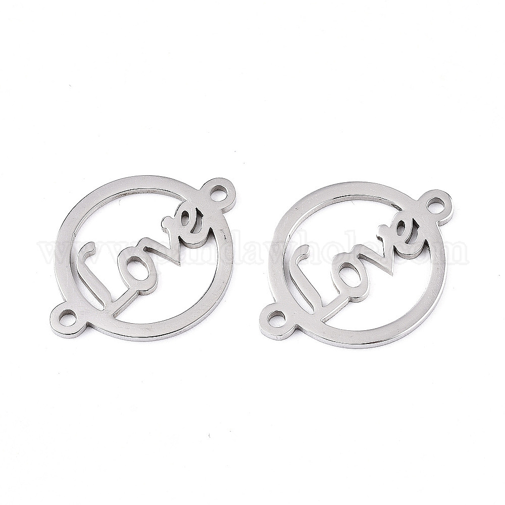 201 соединительные звенья нержавеющие, лазерная резка, на день Святого Валентина, плоские круглые со словом "love"