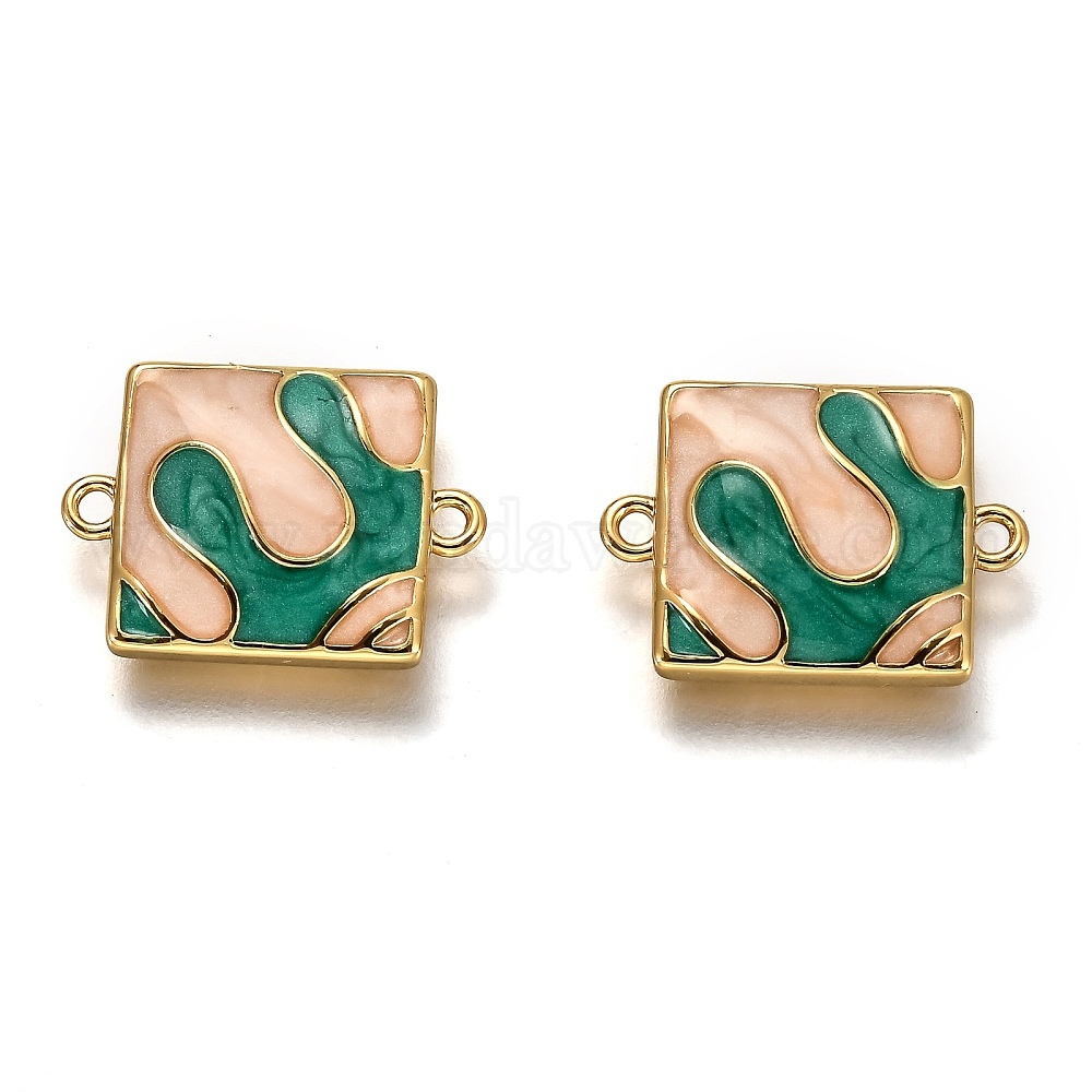 Соединители латунные звенья, долговечный, с эмалью, реальный 18 k позолоченный, квадратный