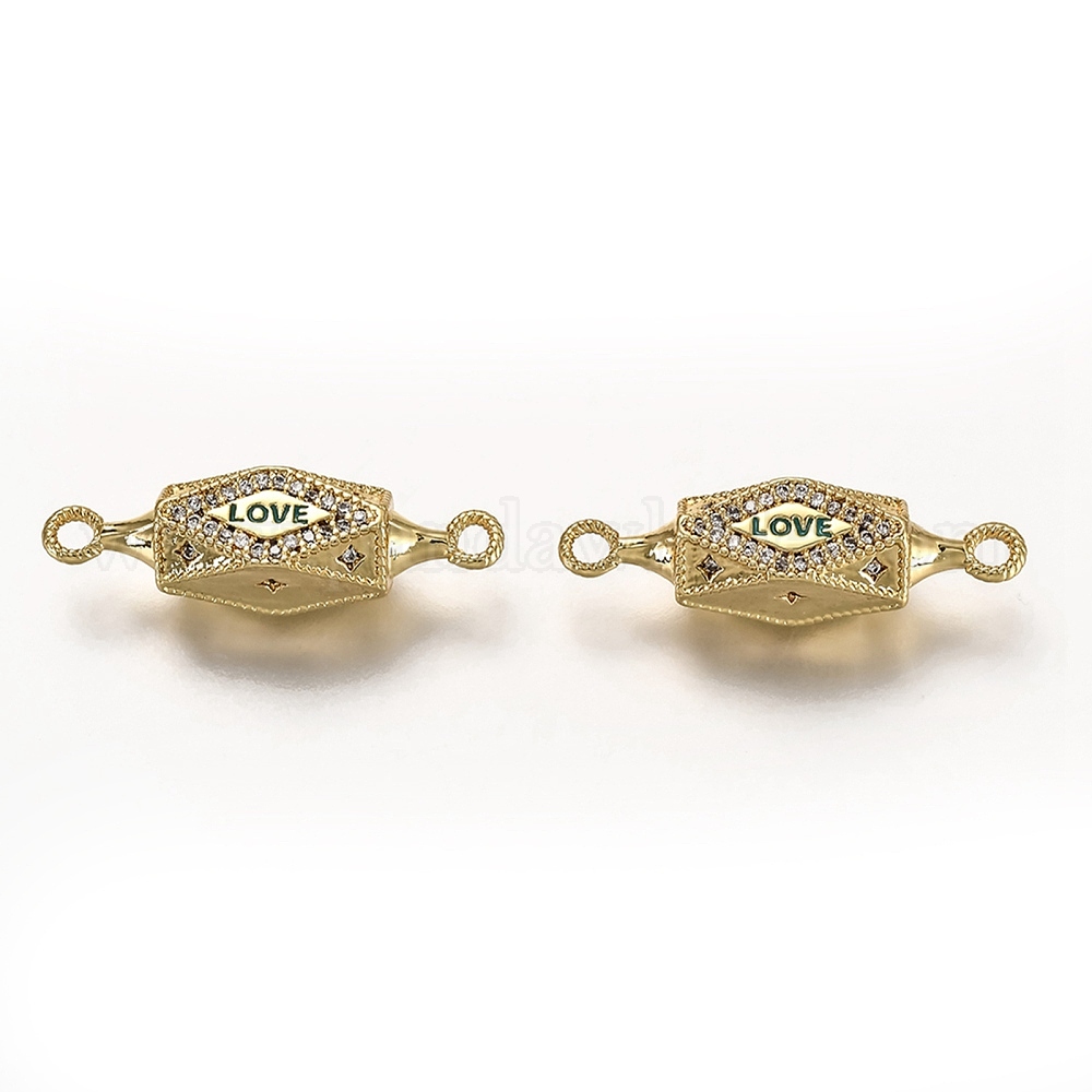 Латунные соединители звеньев микропаве, прозрачные кубические циркония, долговечный, многоугольник и слово любовь