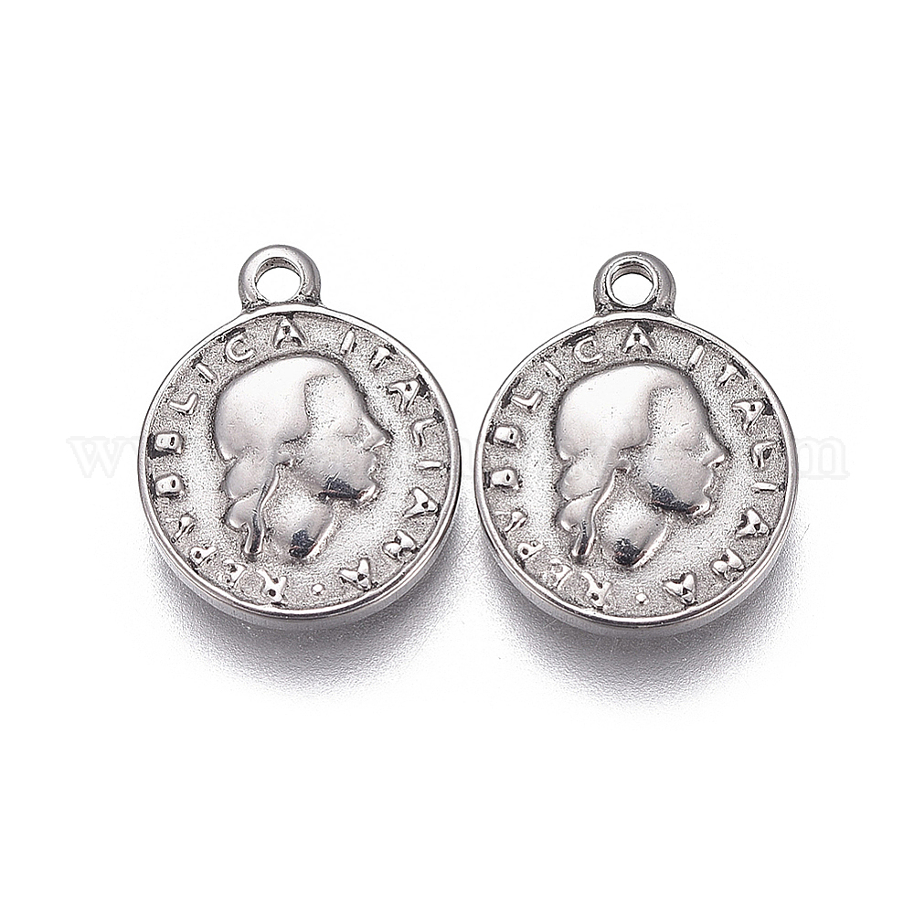 • Нержавеющая Сталь Цвет Устойчивые к потускнению 304 подвески для монет из нержавеющей стали, repvbblica italiana, цвет нержавеющей стали, 12x10x2.5 мм, отверстие : 1.2 мм