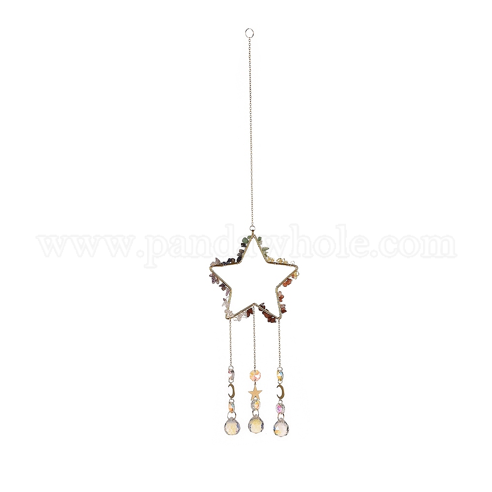Хрустальная люстра стеклянная каплевидная подвеска украшения, подвесные ловцы солнца, с бусинами из натуральных и синтетических драгоценных камней, звезда