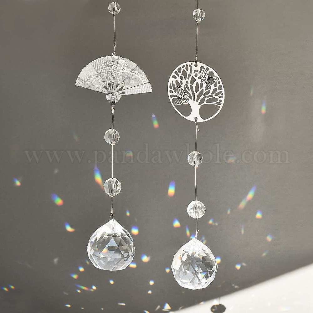 Стеклянный подвесной кулон в виде ловца солнца, хрустальная потолочная люстра, шар, подвески-призмы, фурнитура из нержавеющей стали , веер/древо жизни