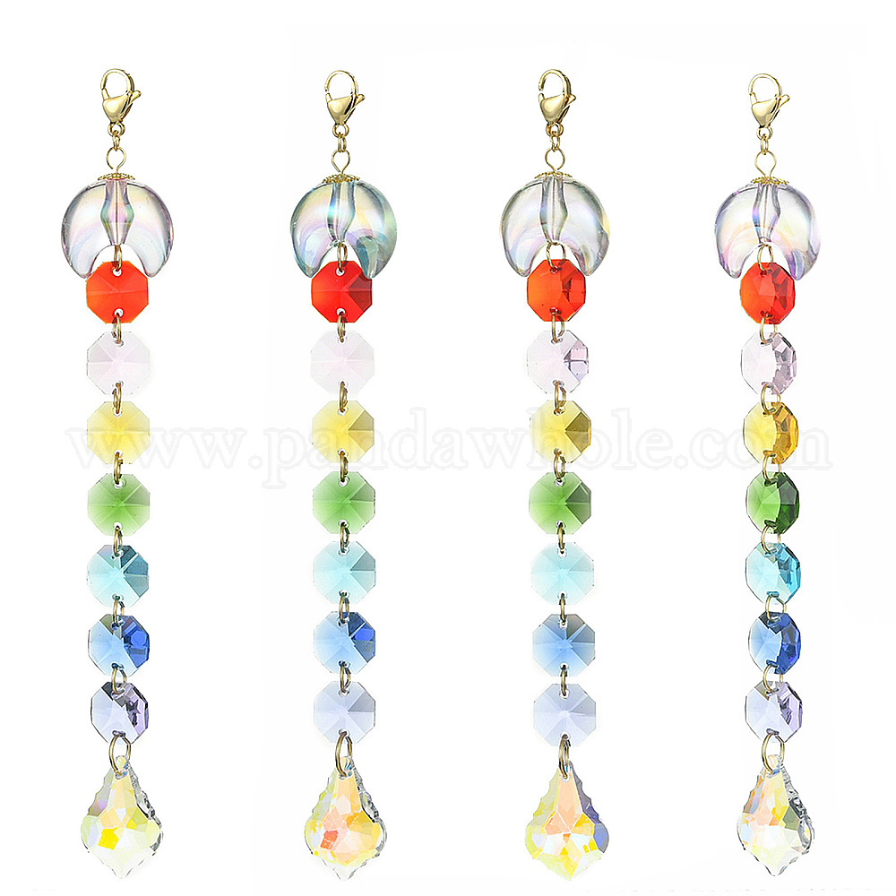 • (52) Непрозрачная лаванда Стеклянные подвесные украшения в форме капли, подвесные ловцы солнца, с восьмиугольным стеклянным звеном и луной из смолы, для украшения дома, разноцветные, 179 мм