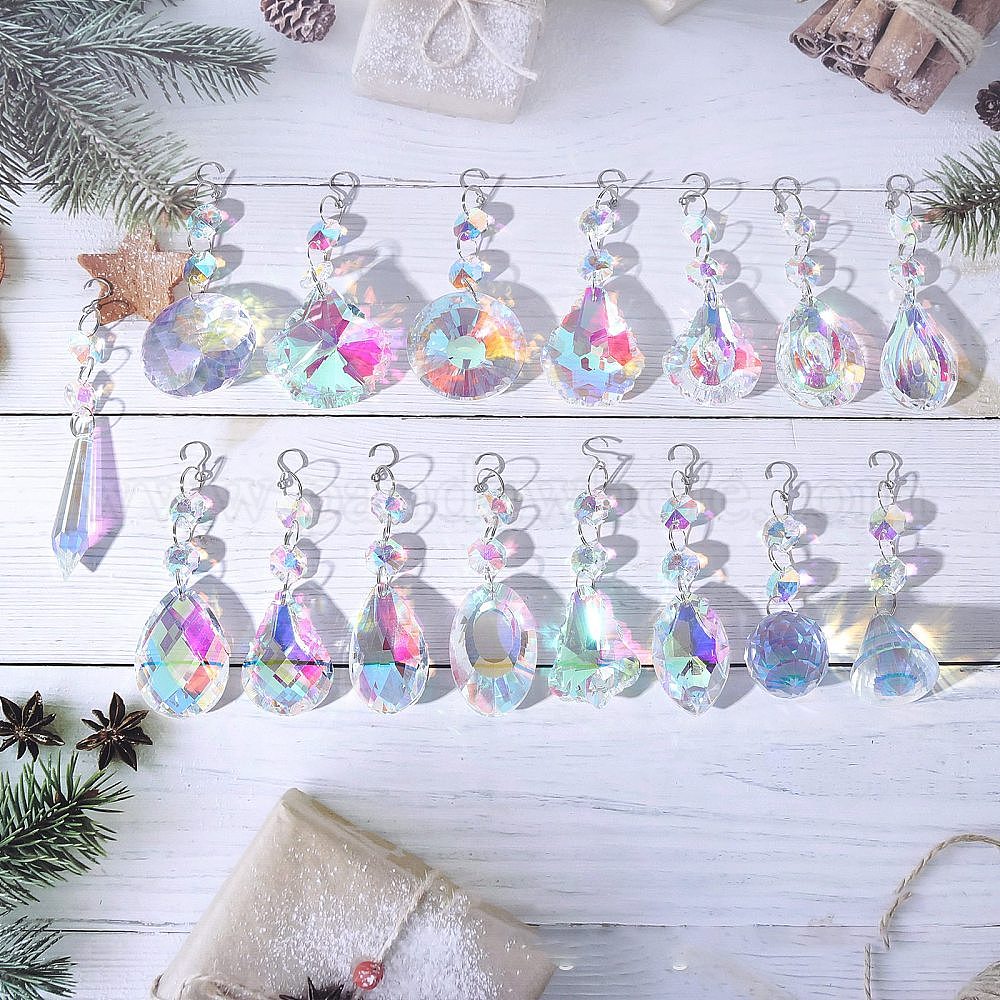 Подвесные украшения из прозрачного стекла ab, со стеклянным восьмигранным звеном, подвесные садовые украшения в виде ловцов солнца