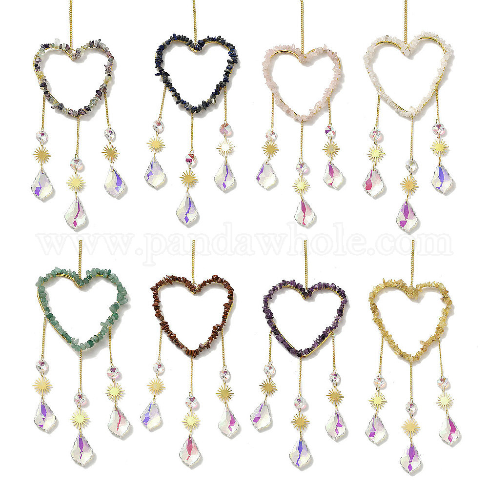 Сердце натуральные драгоценные камни чипсы подвесные украшения, стеклянный лист подвесной ловец солнца для украшения дома и сада