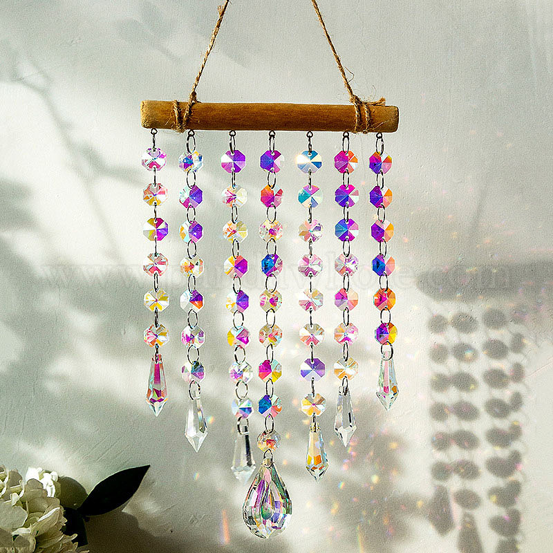 Стеклянные восьмиугольные бусины ловцы солнца подвесные украшения, деревянные палочки для украшения оконной комнаты