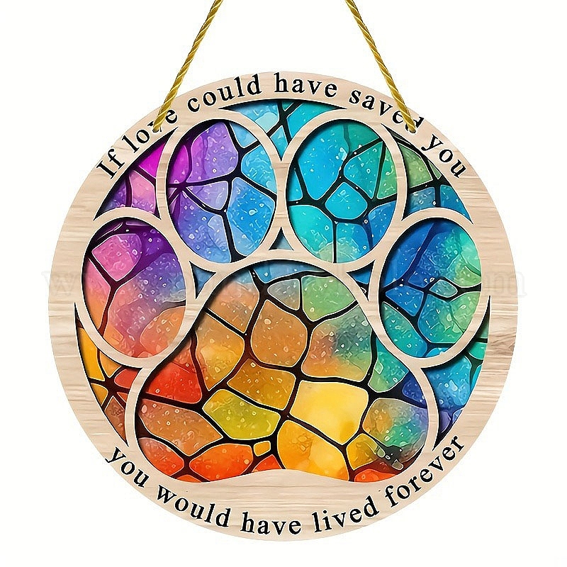 • Плоский Круглый Если бы любовь могла спасти тебя, ловец солнца, украшение с отпечатками лап собаки, акриловая оконная панель, подвесные украшения для дома на окно, плоско-круглые, 150 мм