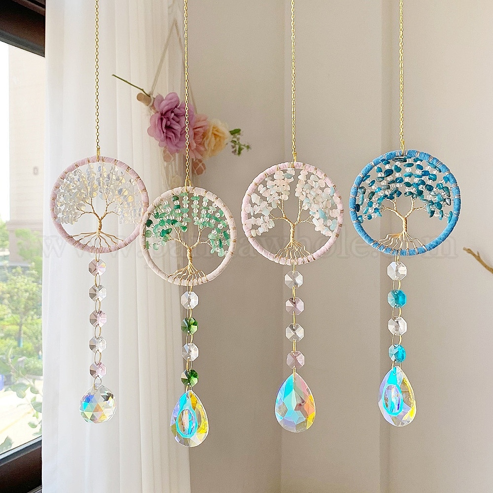 Каплевидные стеклянные ловцы солнца, подвесные украшения из драгоценных камней «дерево жизни», создатель радуги, для украшения сада и дома