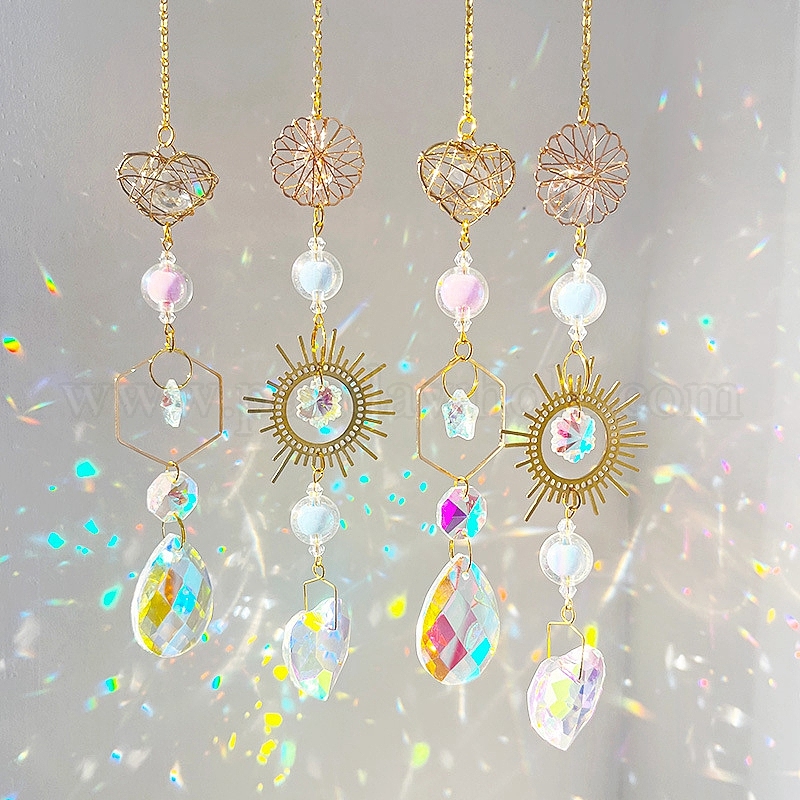 Каплевидные стеклянные ловцы солнца, металлические подвесные украшения, создатель радуги, для украшения сада и дома