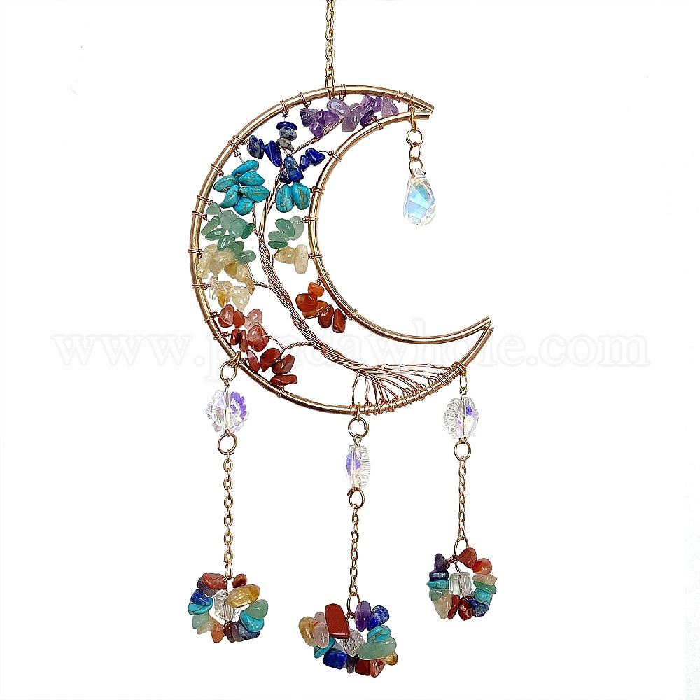 Луна и дерево натуральные и синтетические драгоценные камни люстры ловцы солнца призмы, со стеклянными бусинами, подвесные украшения для домашней спальни (02WBNA)