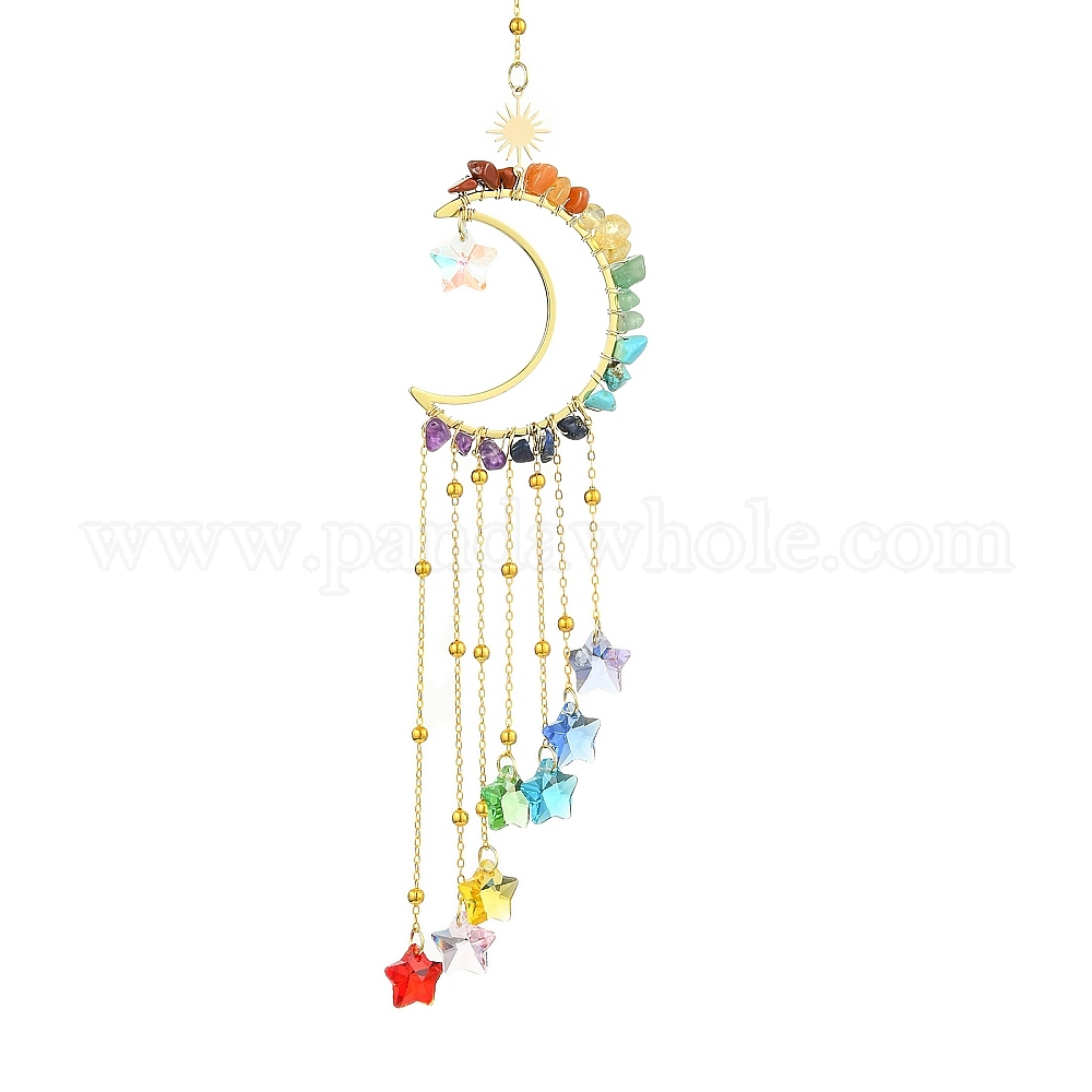 Украшение стеклянной подвески в виде звезды, подвесные ловцы солнца, с кольцом 304 фурнитура из нержавеющей стали, латунные бусины и бусины из драгоценных камней чакры