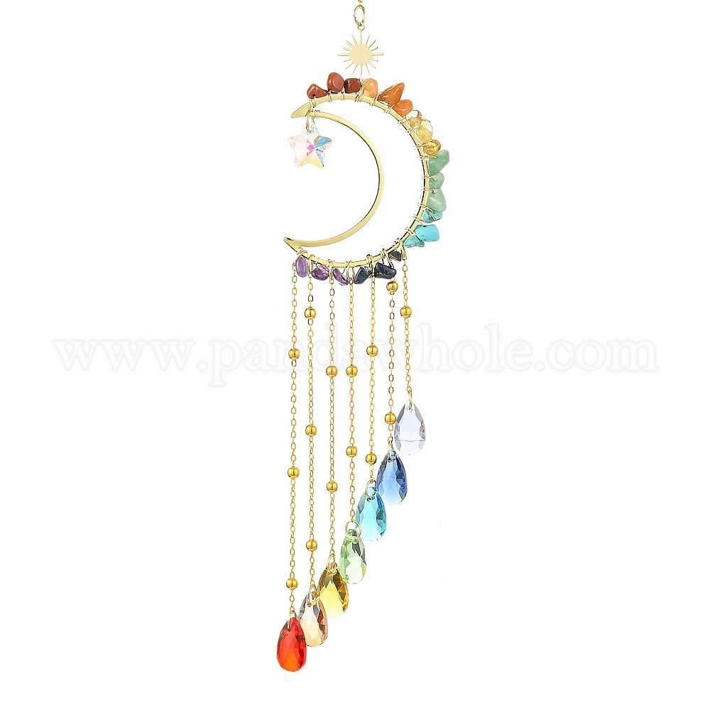 Стеклянная подвеска в форме капли, подвесные ловцы солнца, с кольцом 304 фурнитура из нержавеющей стали, латунные бусины и бусины из драгоценных камней чакры