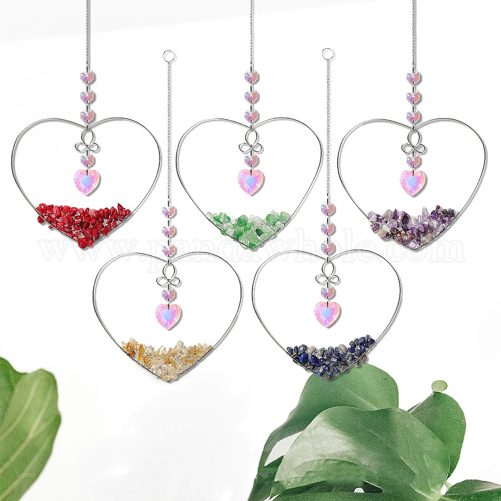 Подвесные украшения в виде сердечек из натурального драгоценного камня, обернутые проволокой, стеклянные сердечки-кисточки для ловцов солнца для дома и сада, украшения для улицы