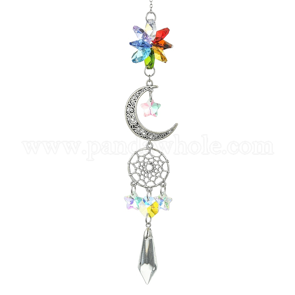 Луна в тибетском стиле из сплава, подвесные украшения, стеклянные бусины с цветочной чакрой и звездочкой, кисточкой, ловцами солнца для садовых украшений дома