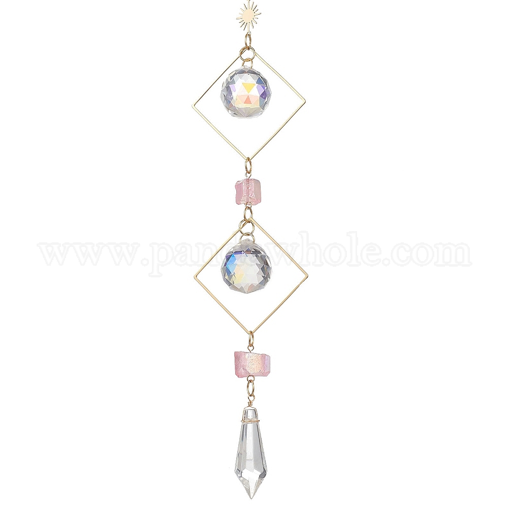 Латунные ромбовидные подвесные ловцы солнца, стеклянные круглые и конические подвески и гальванизированные бусины из натурального кварца для украшения окон дома