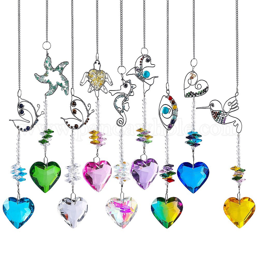 Металлические подвесные украшения в виде животных, создатель радуги на окнах, Стеклянный подвесной ловец солнца в форме сердца для украшения крыльца дома и сада