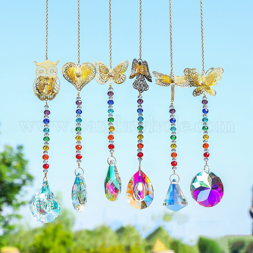 Металлические подвесные украшения, создатель радуги на окнах, Стеклянные разноцветные бусины и кисточки для украшения крыльца дома и сада (02X8CQ)